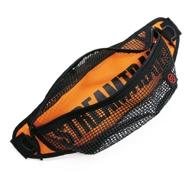 ラバーコーティングされたメッシュを使用することで中身の視認性と保護性を高めたウェストバッグです。スイミングゴーグルなどの濡れ物を入れたまま乾かすことができます。