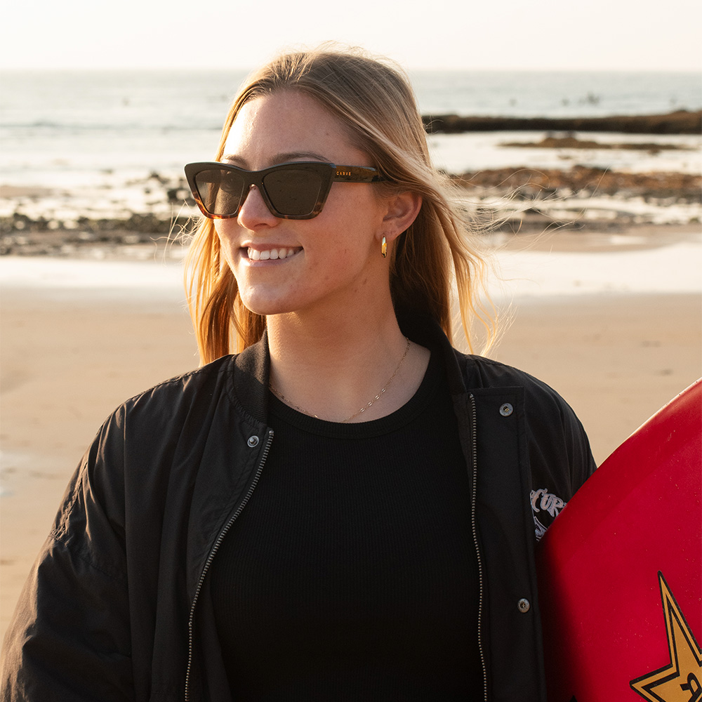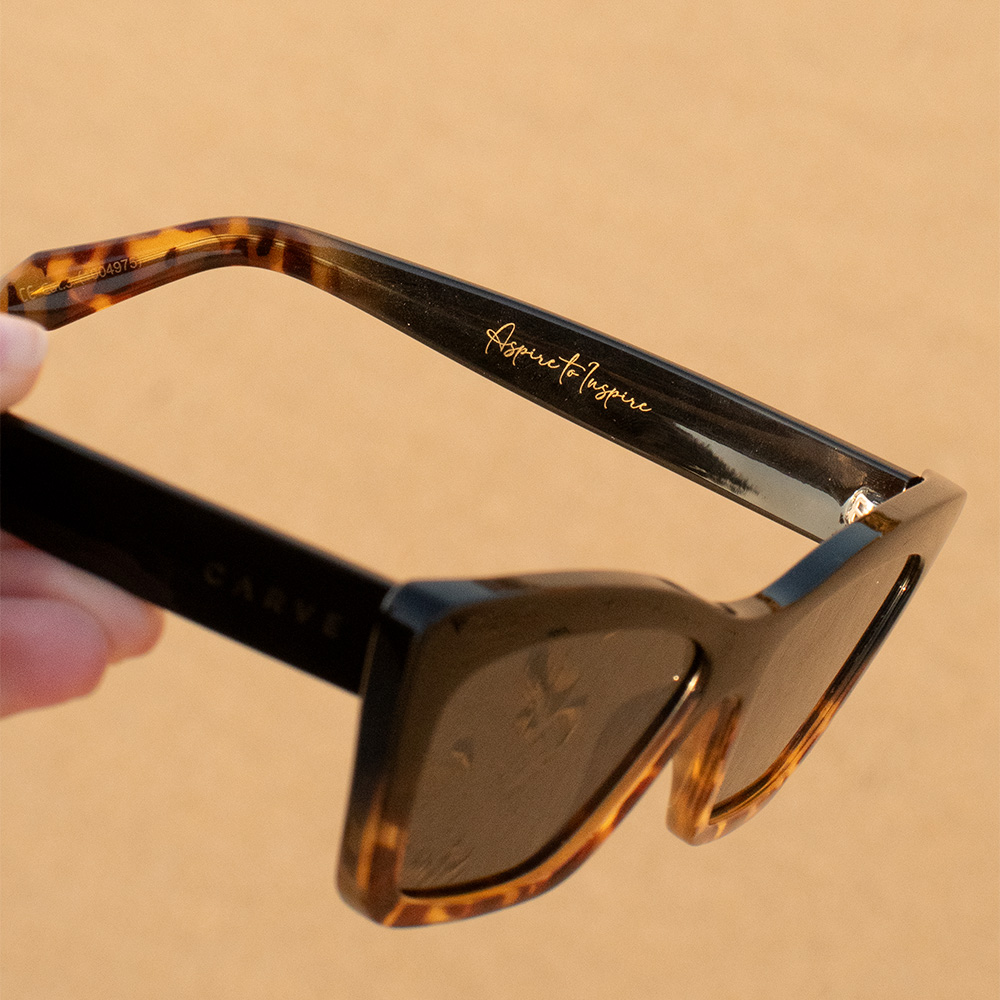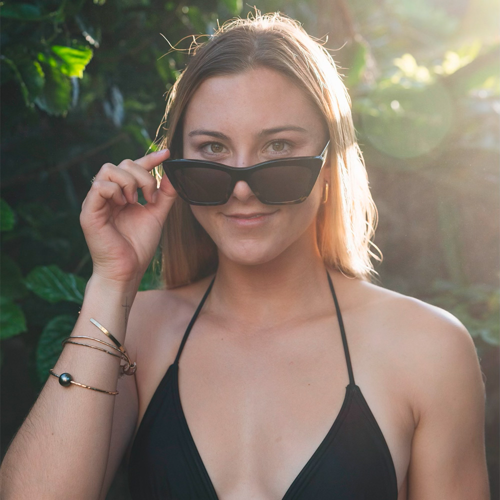 TAHOE II (タホー2)は、カリフォルニア州エンシニータス出身の世界的女性サーファーのアリッサ・スペンサーが企画したシグネイチャーモデル。なめらかなキャットアイシルエットと美しいエッジラインが特徴です。テンプル内側に アリッサのモットーである「ASPIRE TO INSPIRE」の文字を入れました。