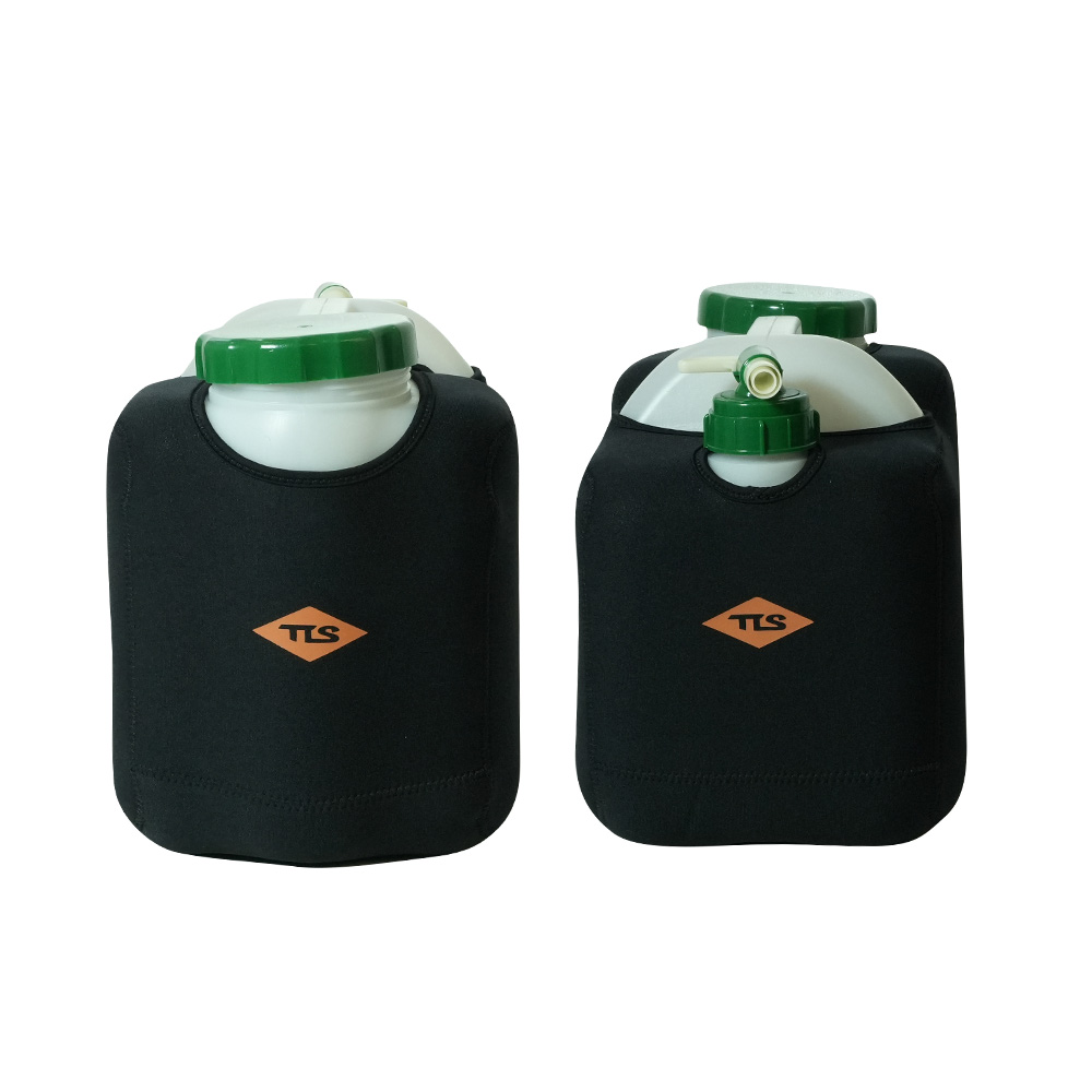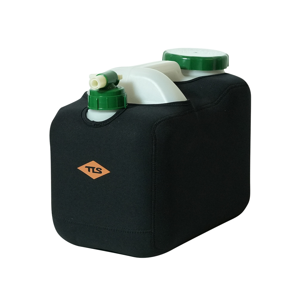 サーフィンや海水浴などウォータースポーツや、アウトドアや防災用途としても活躍する「ポリタンク用保温保冷ネオプレン素材のカバー」とポリタンク本体のセット。